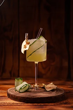 Nuestro cóctel más representativo: Cachaça con mano de buda y cítricos, pepino natural y manzana verde, con sirope de pepino y un toque de ginger ale. Fresco, equilibrado y muy fácil de beber.